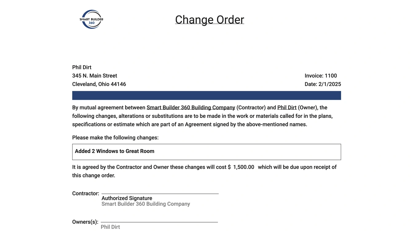 Avoid disputes with documented, approved change orders that everyone can see and track.