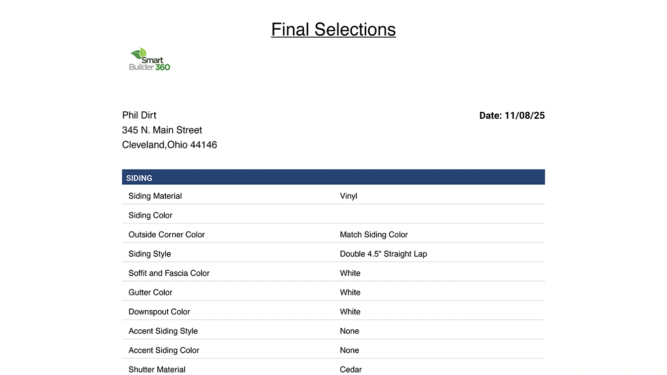 Avoid last-minute confusion with clear, trackable client selections for finishes and materials.